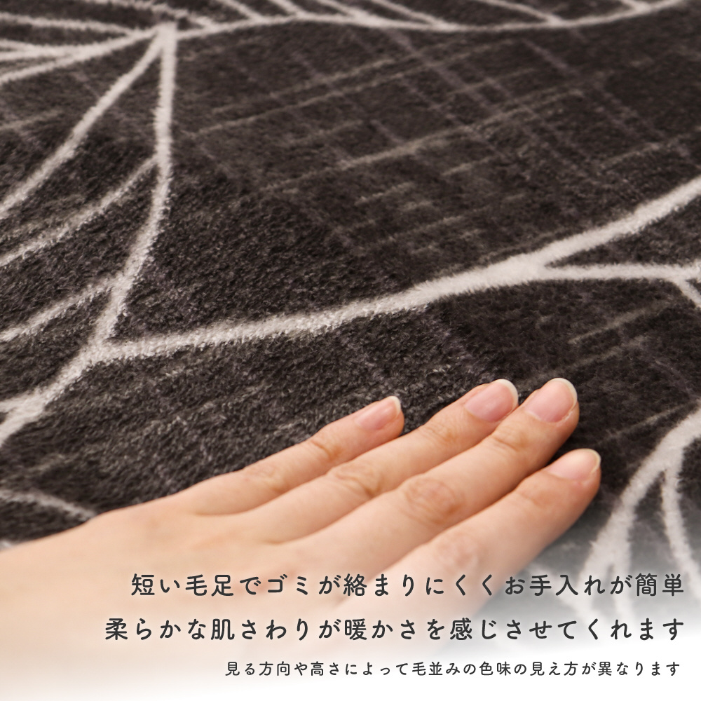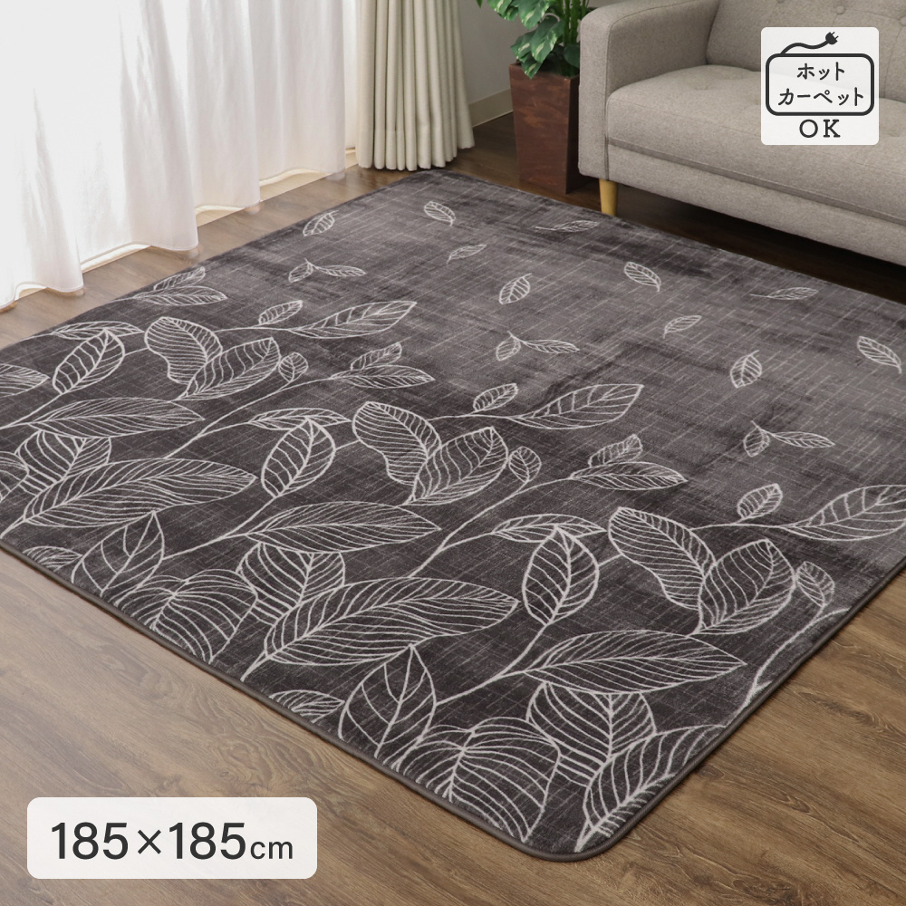【ラグ】ボリュームフランネルセンターラグ リーフ 正方形サイズ(約185x185cm) グレー 963729/GY