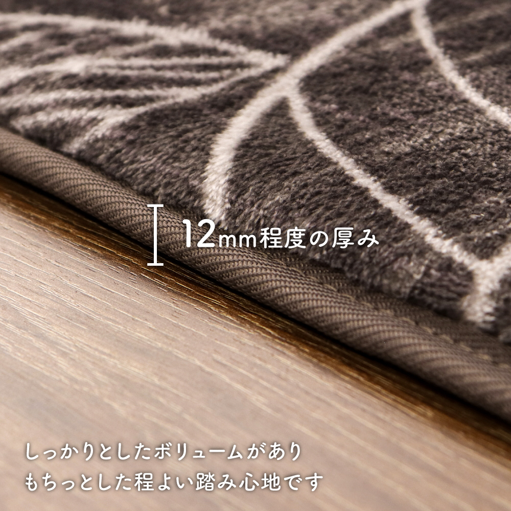 【ラグ】ボリュームフランネルセンターラグ リーフ 長方形サイズ(約200x240cm) グレー 963730/GY