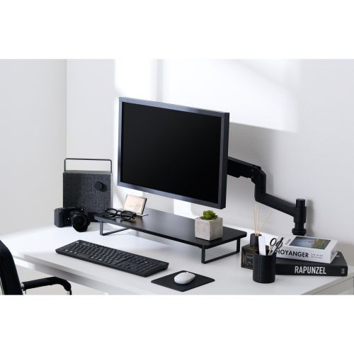モニターの高さを上げ、目線を上げることでパソコン作業時の姿勢を改善するモニタースタンドです。スタンドの下にキーボードを置くなどスペースを有効活用できるので、デスクを広く使えます。