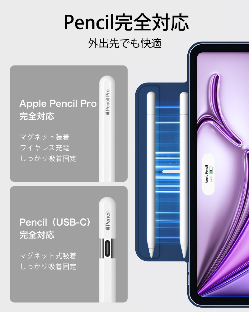Pencil Proへ完全対応かつ、磁気充電用の側面の溝と、Pencilをしっかりと固定するマグネットクラスプを備えています。