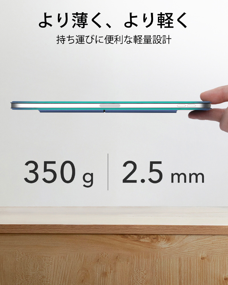 持ち運びに便利な軽量設計で、閲覧、タイプ、手書き用に前面カバーを安定したスタンドとして活用できます。