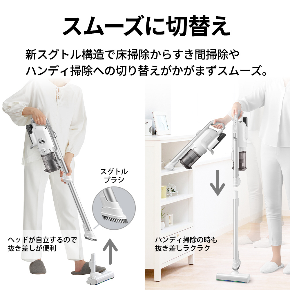 スグトルブラシ、バッテリー、すき間ノズル、ツールホルダー、 ハンディノズル、充電器、はたきノズル、スタンド台、コンパクトふとん掃除ヘッド