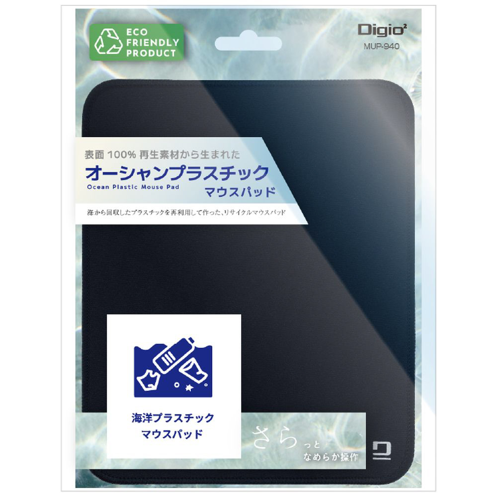 オーシャンプラスチックマウスパッドは、海から回収されたプラスチックと再生PETを原料にした環境に配慮されているマウスパッドです。近年、海洋に流出したポリエステルなどの合成繊維が、紫外線や海水の影響で温室効果ガスを発生させており、海洋汚染の一因とされています。