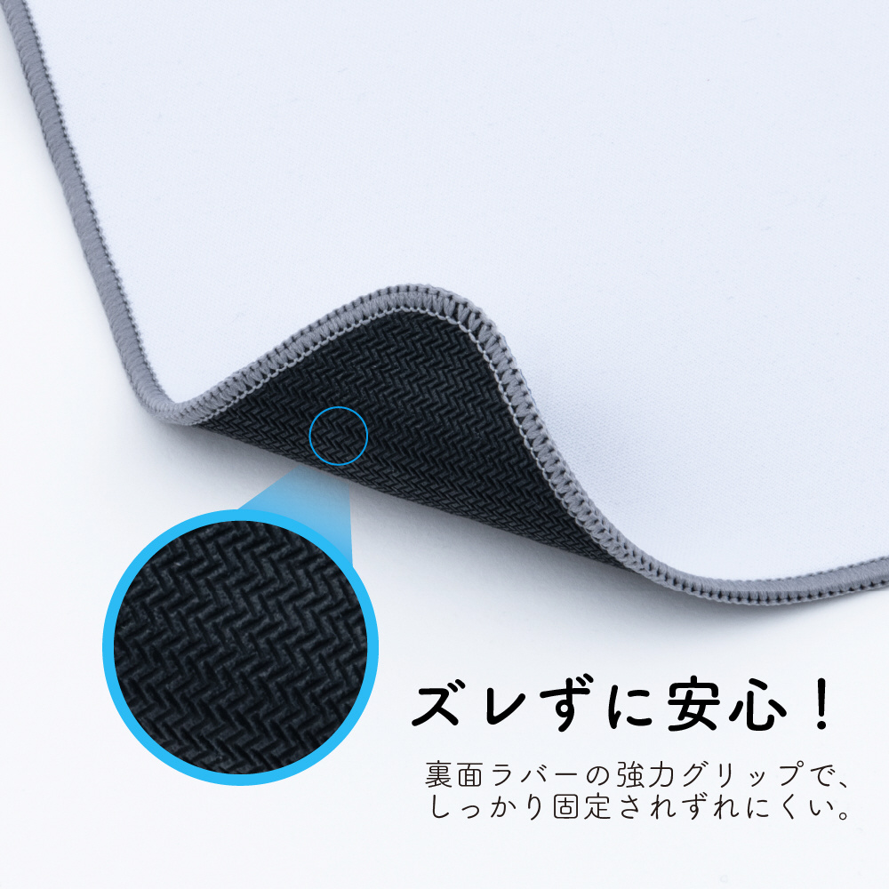 裏面ラバーは天然ゴムの強力グリップでしっかり固定され、ずれにくくマウス操作が快適です。
