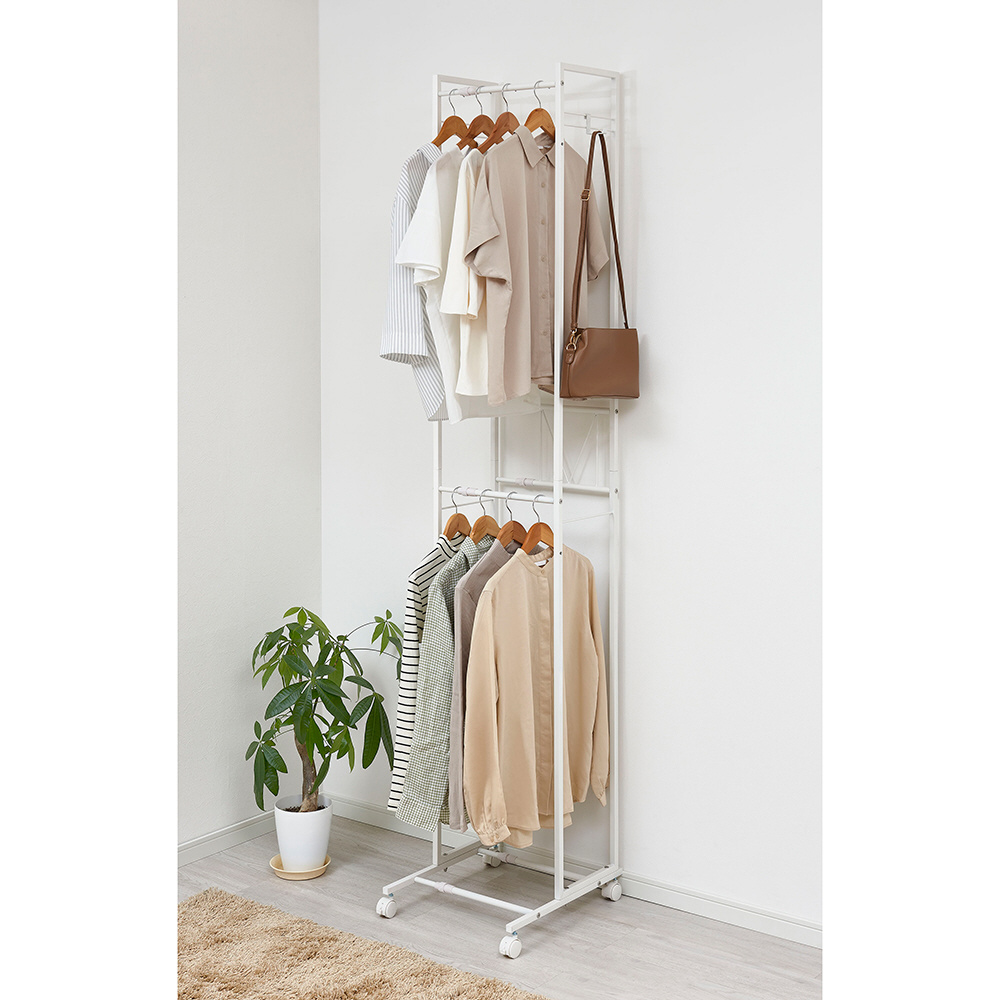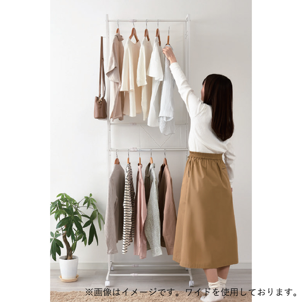 ハンガーラック 2段 スリム 伸縮タイプ キャスター付き 衣類 収納 ホワイト KP-2HS-W