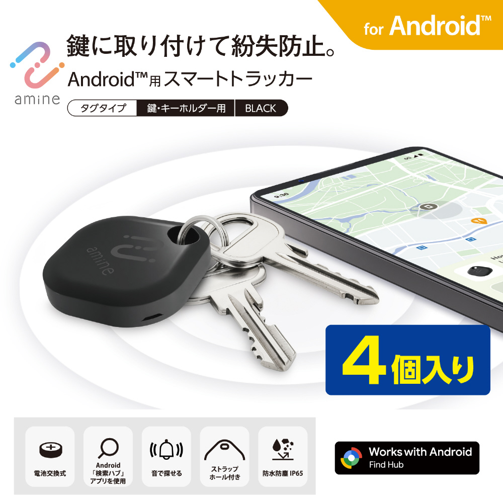 Android(TM)の「Find Hub」アプリから位置を確認!鍵や財布、かばんなど大切な荷物に付けて位置情報を追跡できるamine(あみね)シリーズの忘れ物防止タグです。激しい雨に濡れても安心の防水・防塵等級IP65だから、多彩なシーンで活躍。重さはたったの8.2gだからキーホルダー感覚で付けられます。いろいろな場所に付けられる、安心の4個セットです。