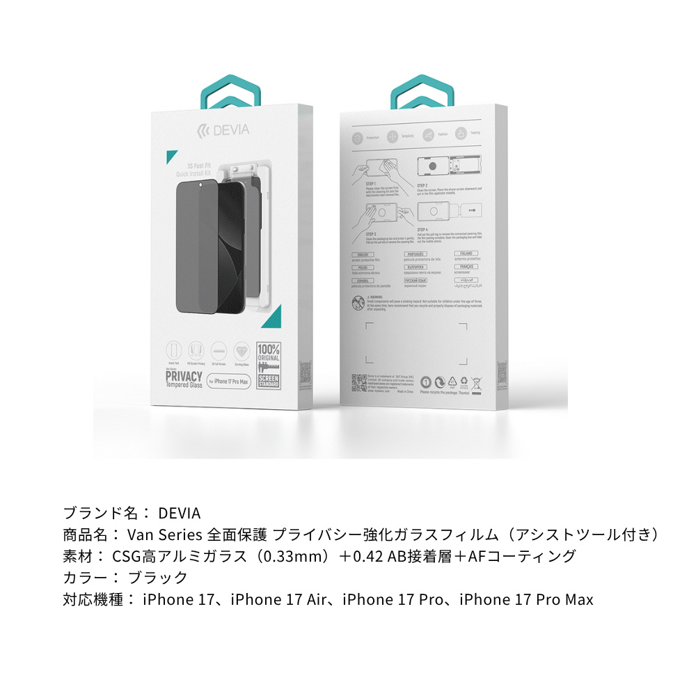 iPhone 17フィルム Van Series Full Screen Privacy Tempered Glass(With Assist Tool) DEVIA ブラック BLDVGL02-17-PR