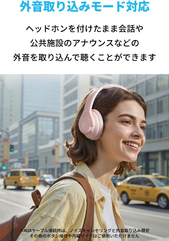 ヘッドホンに搭載された4つのマイクが周囲の騒音を検知。アクティブノイズキャンセリングによって自動車や飛行機のエンジン音などの低周波ノイズを除去します。