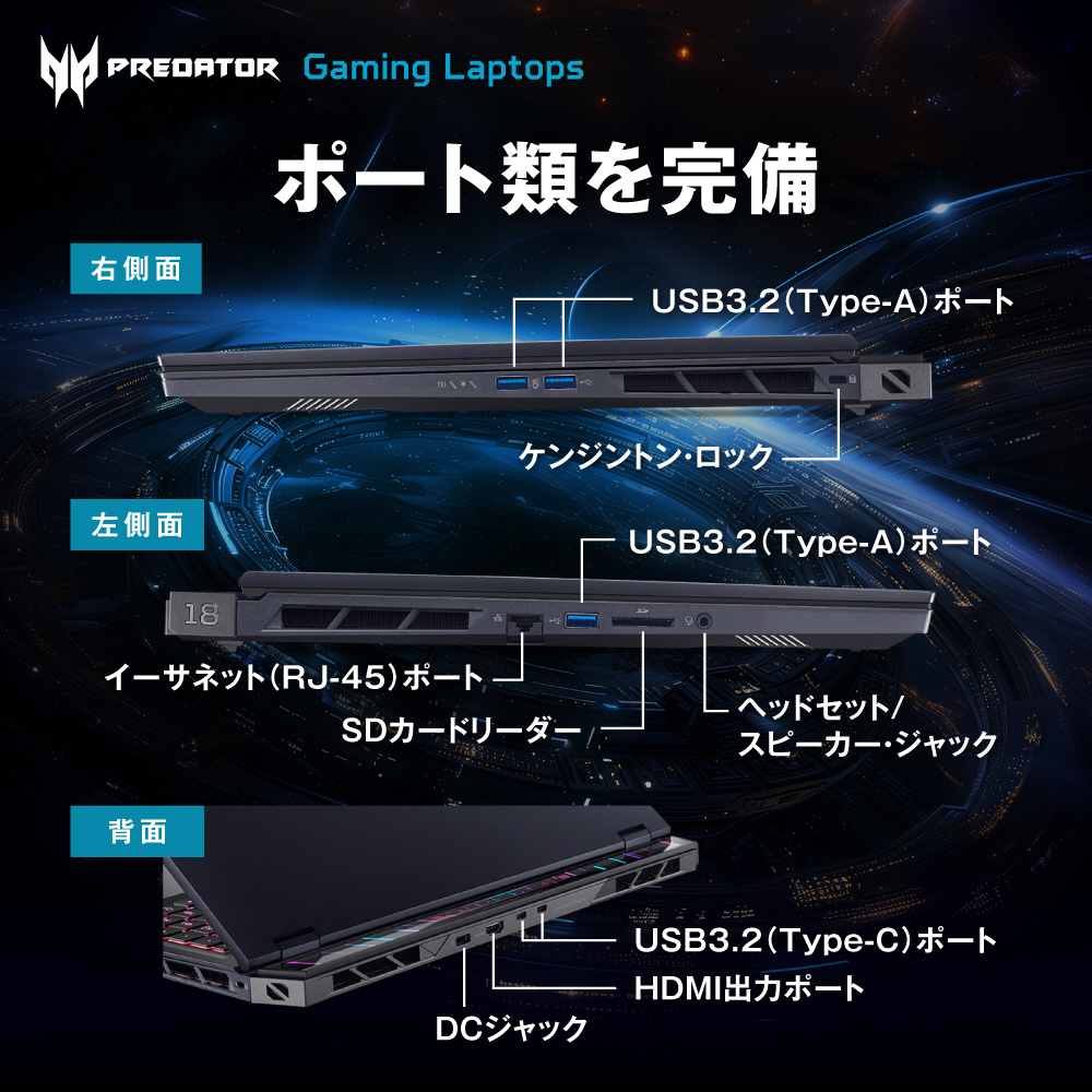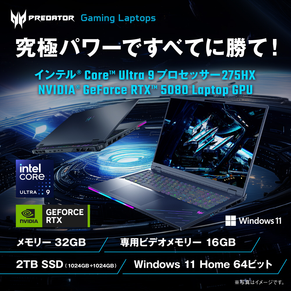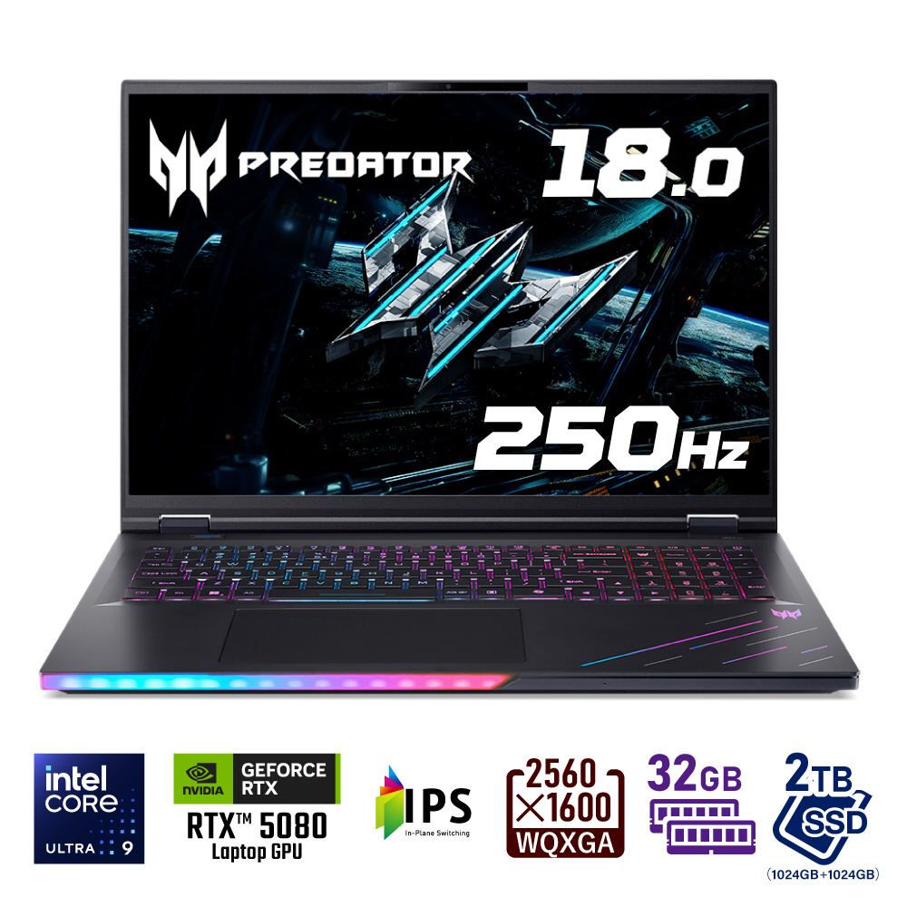 PH18-73-H932Z58/E ゲーミングノートパソコン Predator(RTX 5080) [18.0型 /Windows11 Home /intel Core Ultra 9 /メモリ:32GB /SSD:1TB /Microsoft 365 Personal /英語版キーボード /2025年7月モデル]