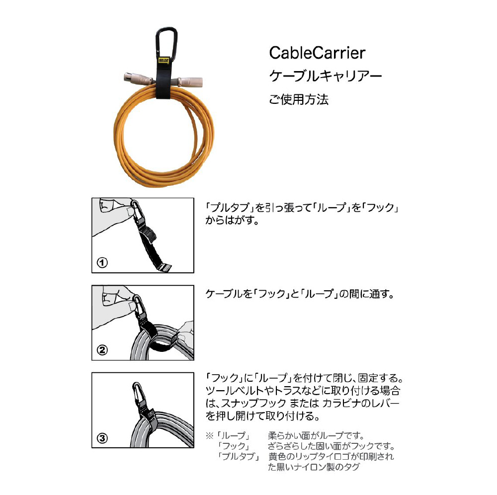 ケーブルキャリアー ウェビング付き(安全環付カラビナ) 50.8mmX508mm 1本入 黒 RIP-TIE