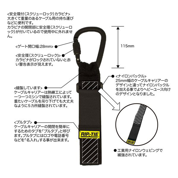 ケーブルキャリアー ウェビング付き(安全環付カラビナ) 50.8mmX508mm 50本入 灰 RIP-TIE