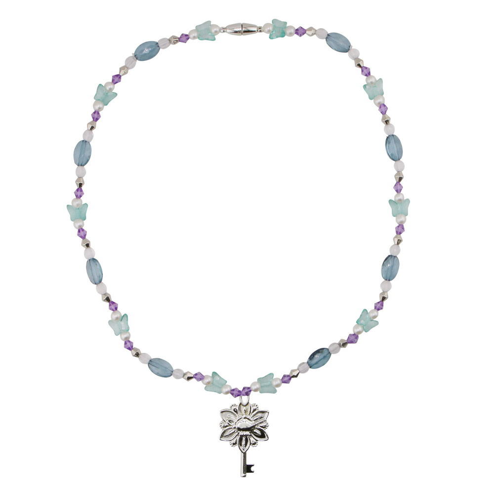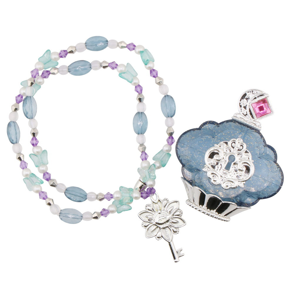 ジャスミンをイメージしたネックレスと香水瓶型の小物入れがセットになった商品です。