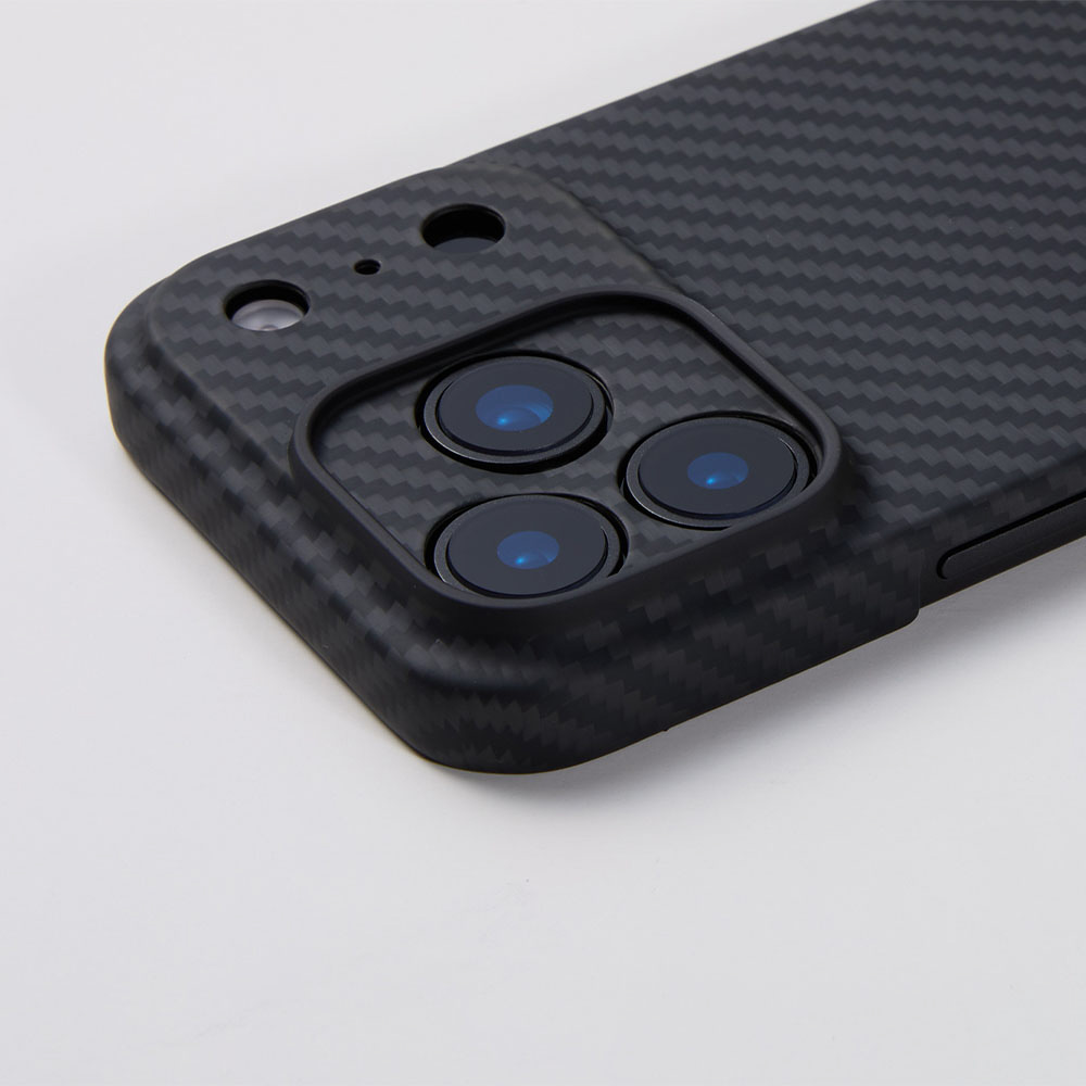 カメラ開口部を本体になじむ特殊仕様としていますので、ケースから露出する本体部を出来るだけ少なくし、アラミド繊維が覆うように配慮しています。