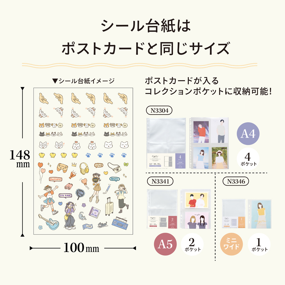 手帳と一緒に持ち運ぶのに便利なポストカードサイズ台紙。