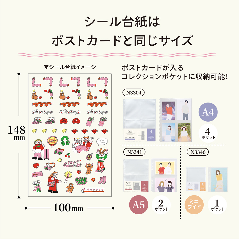 手帳と一緒に持ち運ぶのに便利なポストカードサイズ台紙。