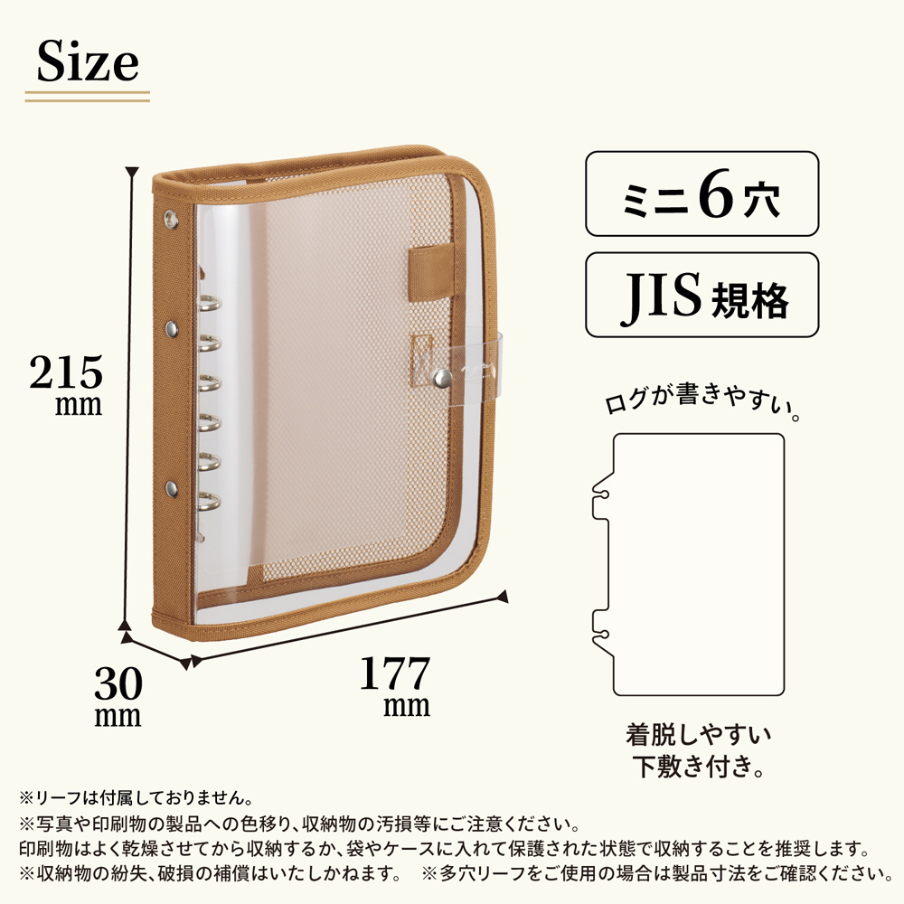 JIS 規格の多穴リーフもとじられるミニ 6 穴とじ具を採用。