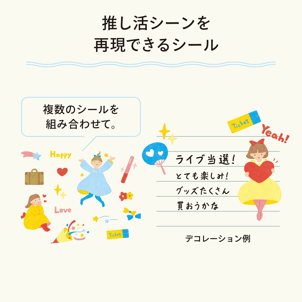 複数のシールを組み合わせることで推し活のひとコマを再現できます。