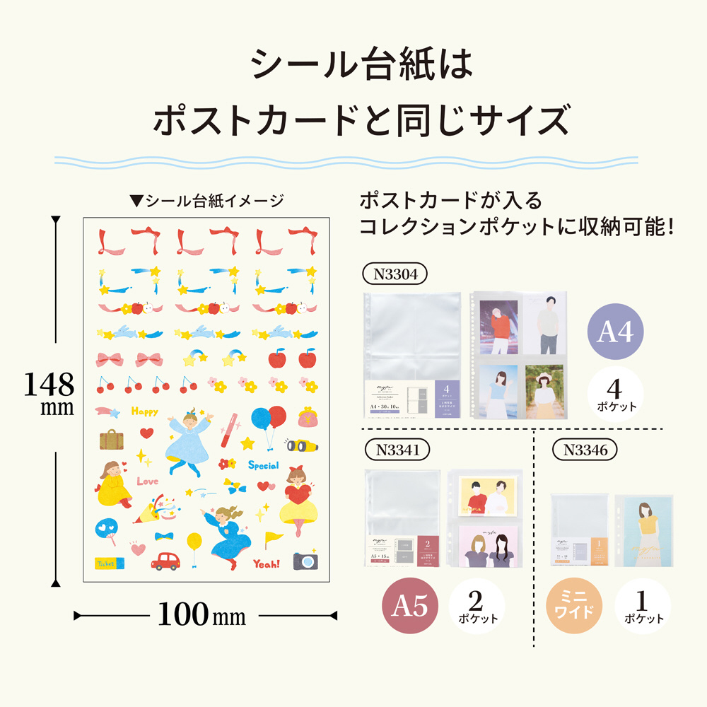 手帳と一緒に持ち運ぶのに便利なポストカードサイズ台紙。
