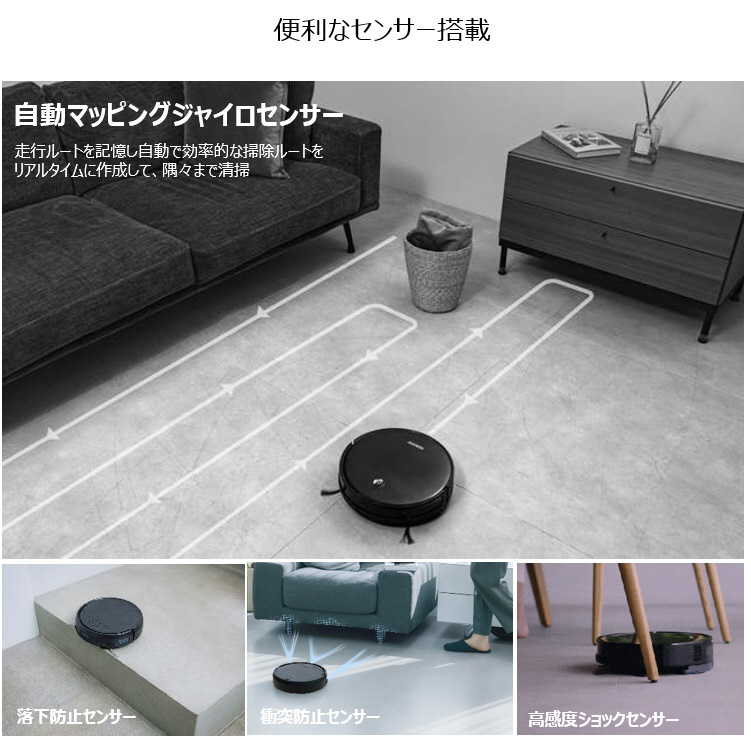 お部屋を弓型に移動し、走行ルートを記憶し自動で効率的な掃除ルートをリアルタイムに作成して、隅々まで清掃