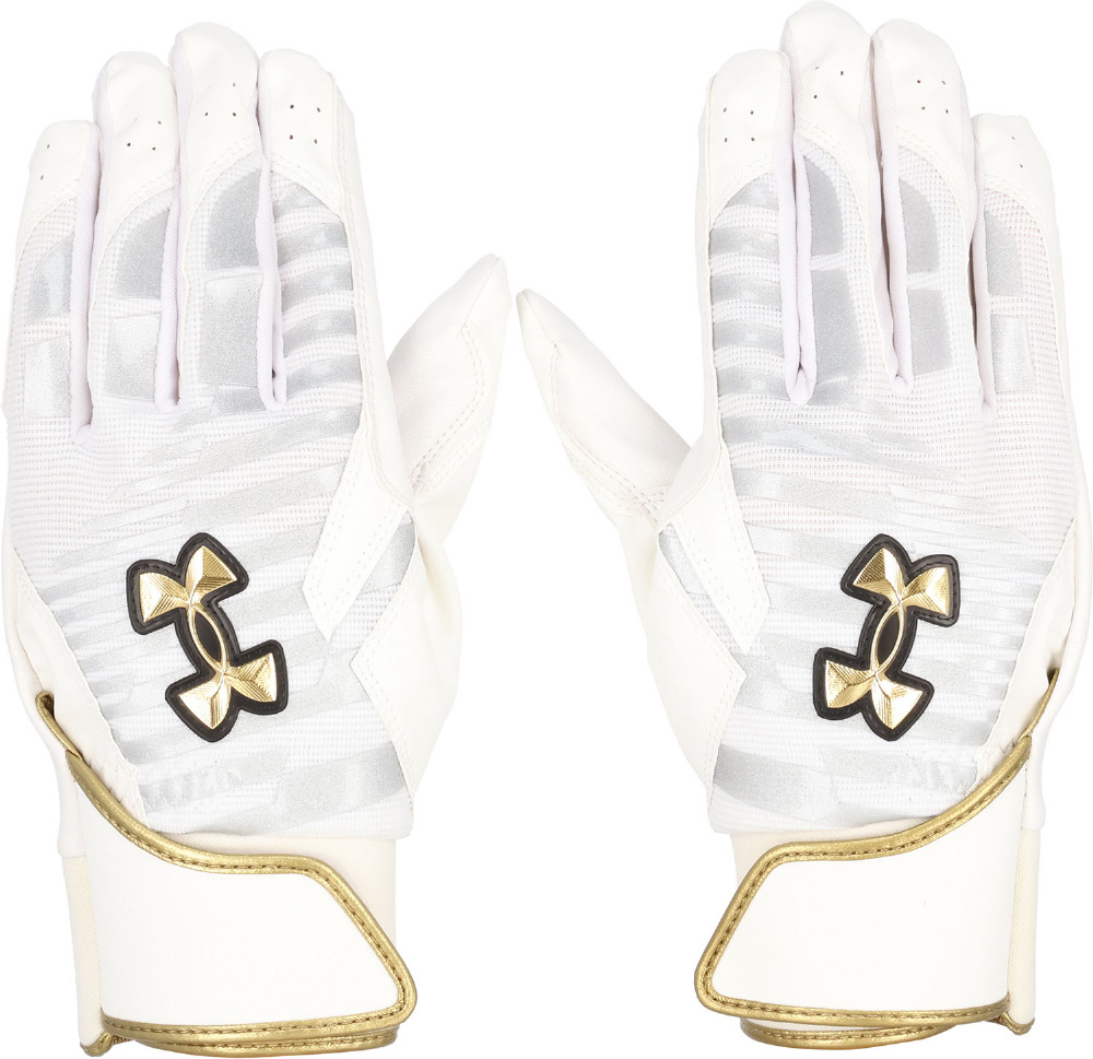 メンズ ベースボール UAクリーンアップ プロ バッティンググローブ White×Silver×Metallic Gold 6001312 [メンズ /両手装着用 /XLサイズ]