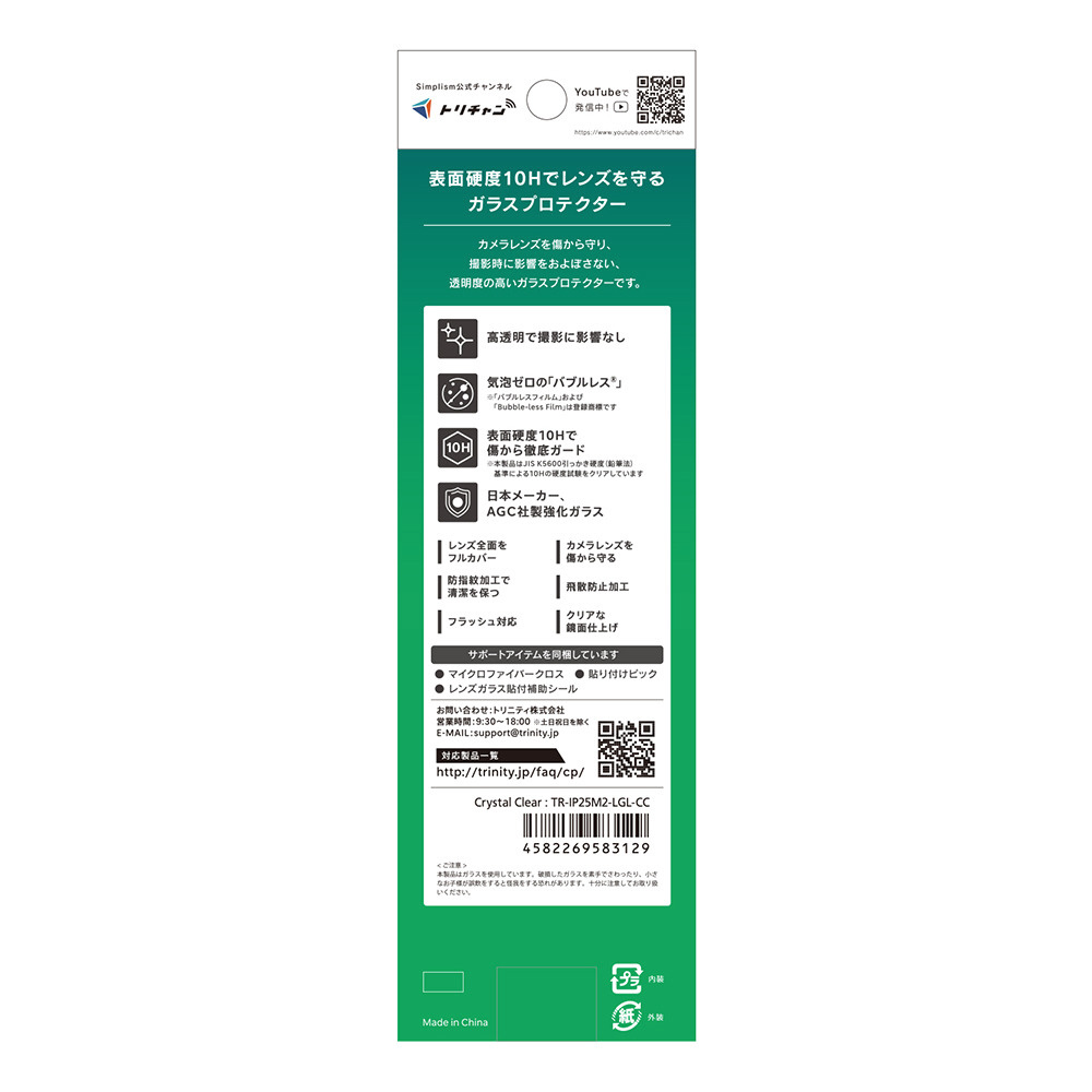 iPhone 17 / 16 / 16 Plus レンズフィルム 精密設計ケース専用 高透明 レンズ保護ガラス TR-IP25M2-LGL-CC