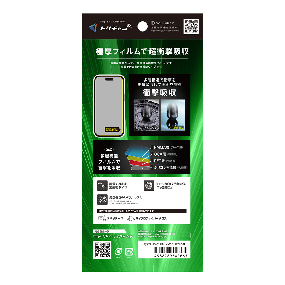 iPhone 17 / 16 Pro フィルム 超衝撃吸収 画面保護フィルム 高透明 TR-IP25M2-PFPM-SKCC
