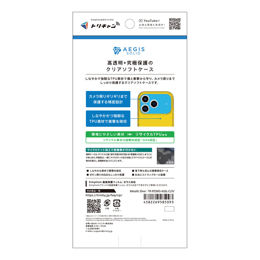 iPhone 17 Pro ケース [Aegis Solid] 超精密設計フルカバーTPUケース シルバー TR-IP25M3-AGSL-CLSV