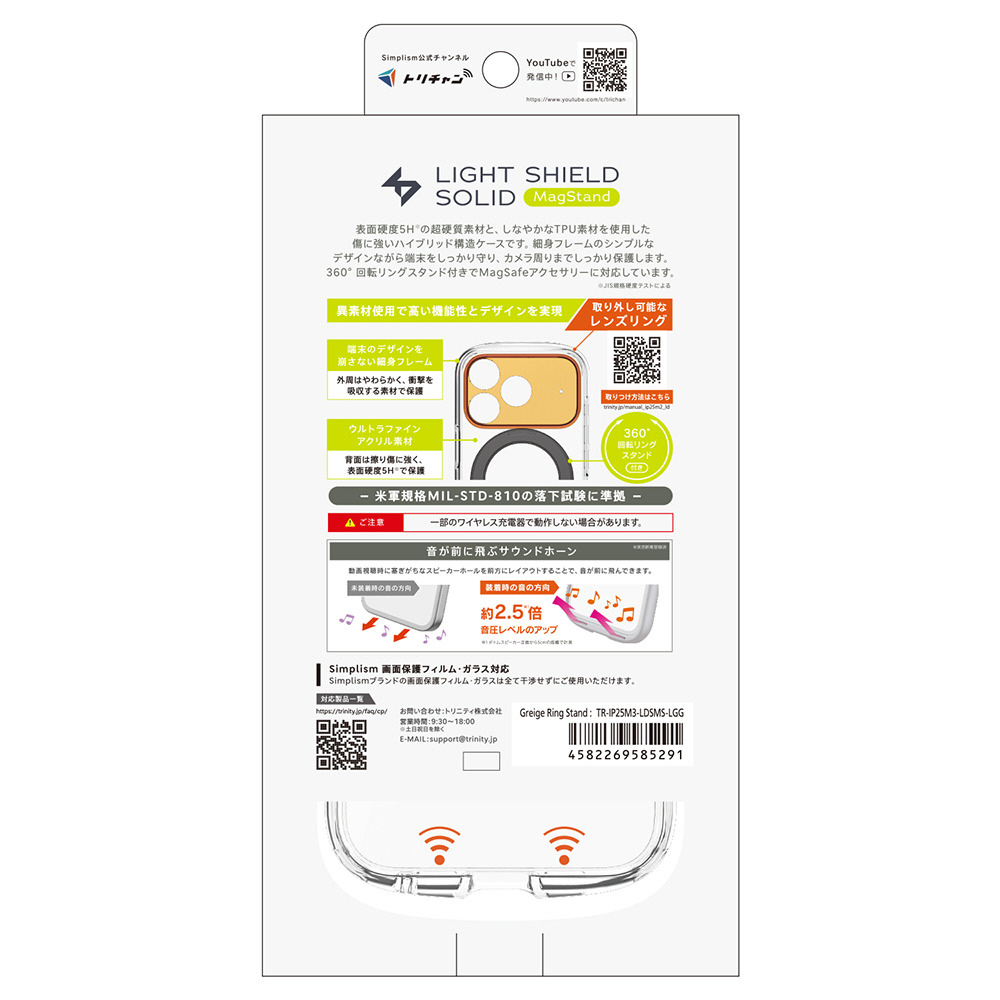 iPhone 17 Pro ケース [LIGHT SHIELD Solid MagStand] MagSafe対応 超精密設計 衝撃吸収 リングスタンド付きハイブリッドクリア ケース グレージュリングスタンド クリア TR-IP25M3-LDSMS-LGG