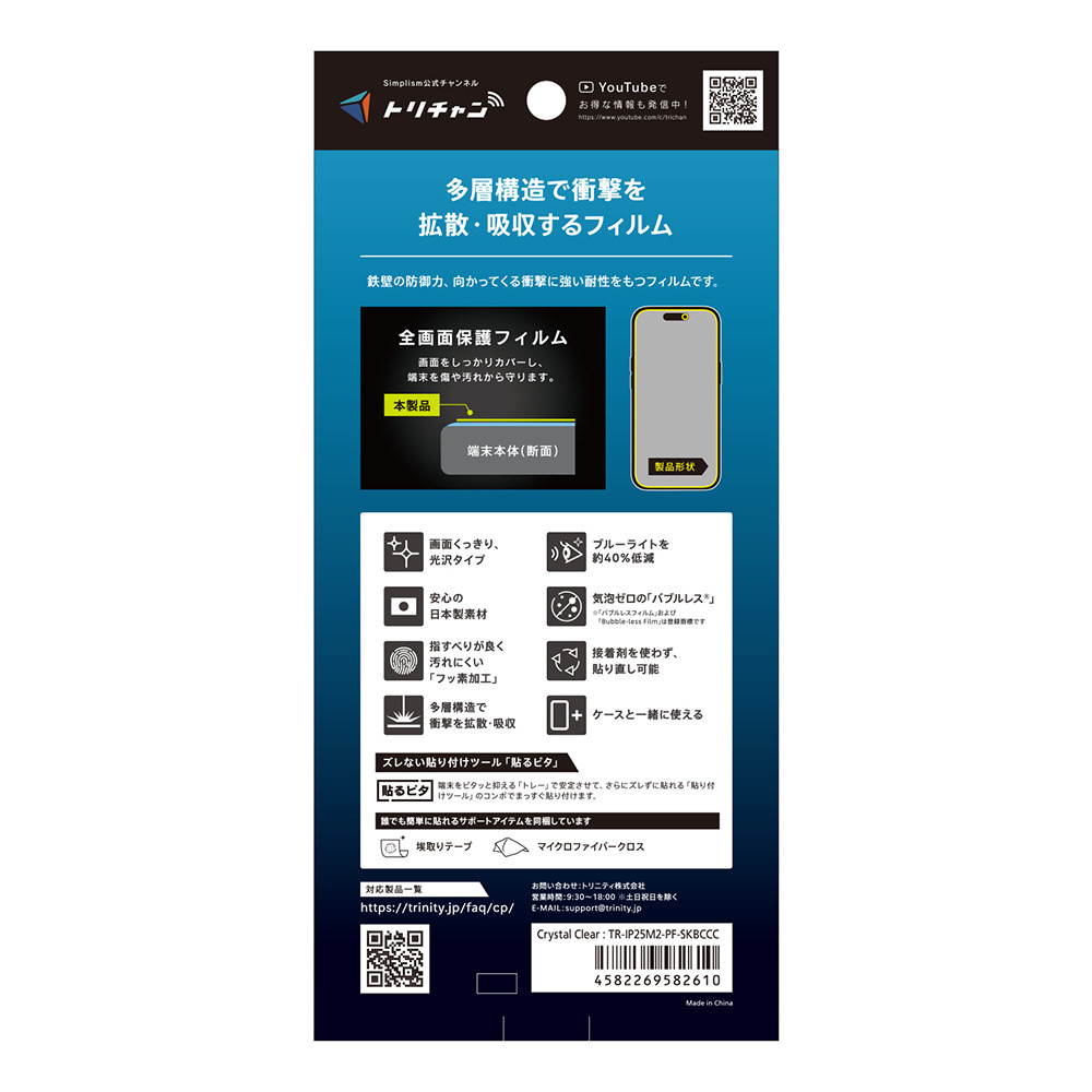 iPhone 17 / 16 Pro フィルム 衝撃吸収&ブルーライト低減 画面保護フィルム 光沢 TR-IP25M2-PF-SKBCCC