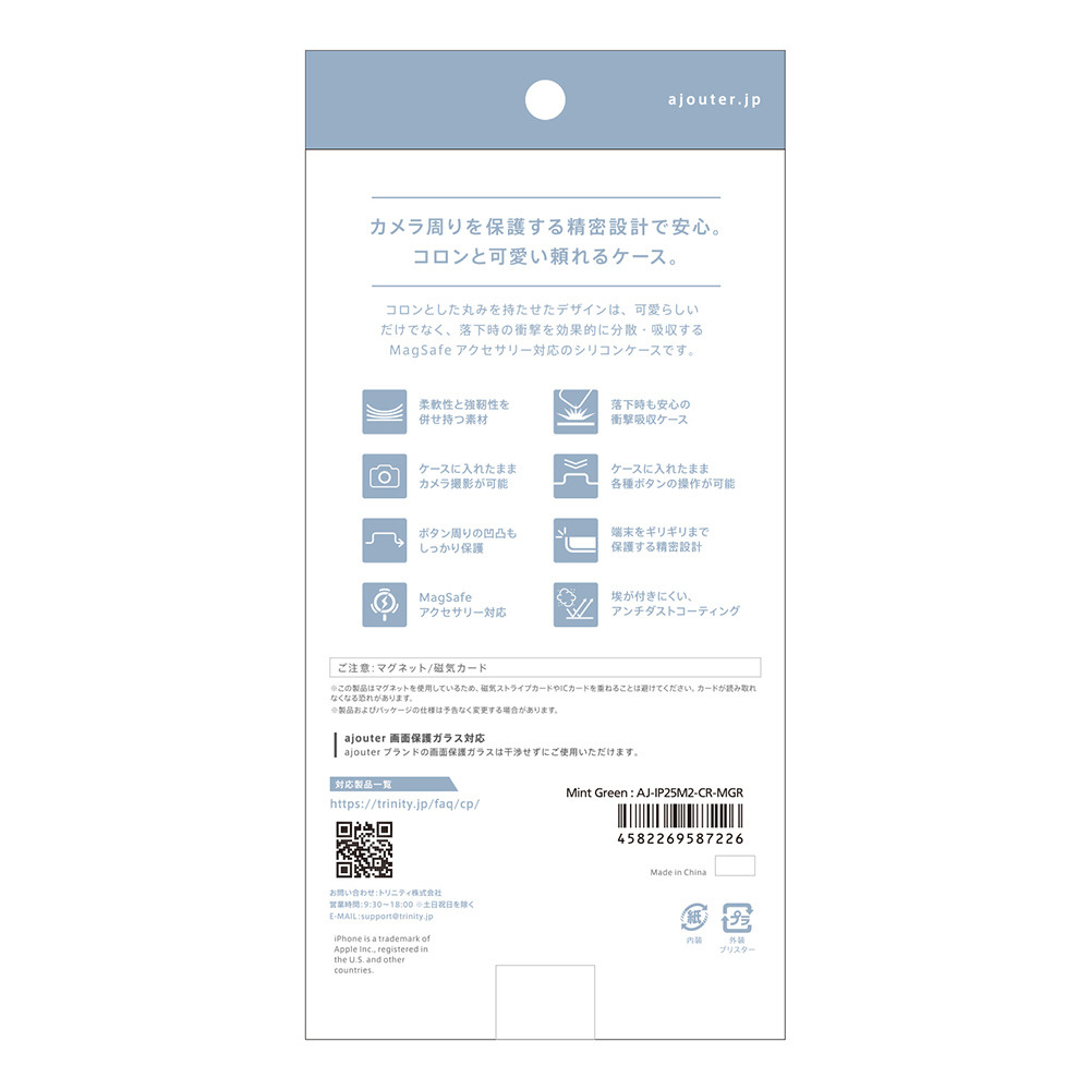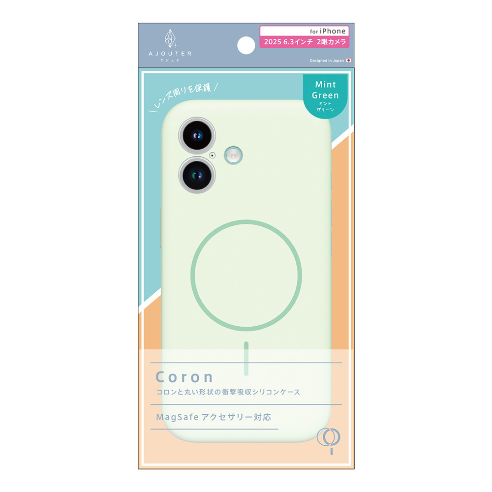 iPhone 17 ケース ajouter アジュテ [Coron] MagSafe対応 超精密設計 衝撃吸収シリコン ケース ミントグリーン AJ-IP25M2-CR-MGR