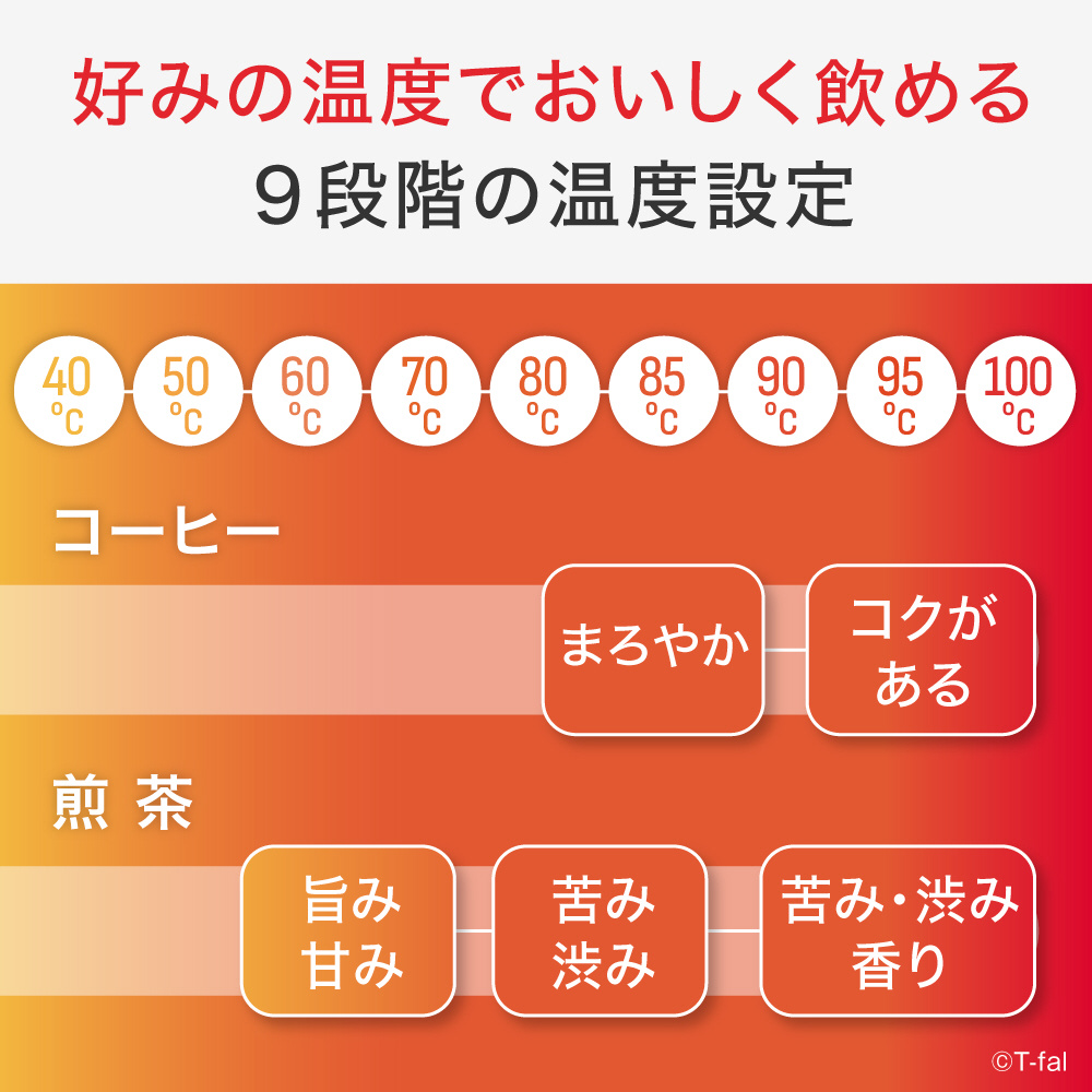 あっという間にあなたのおいしへ、9段階の温度コントロールケトル