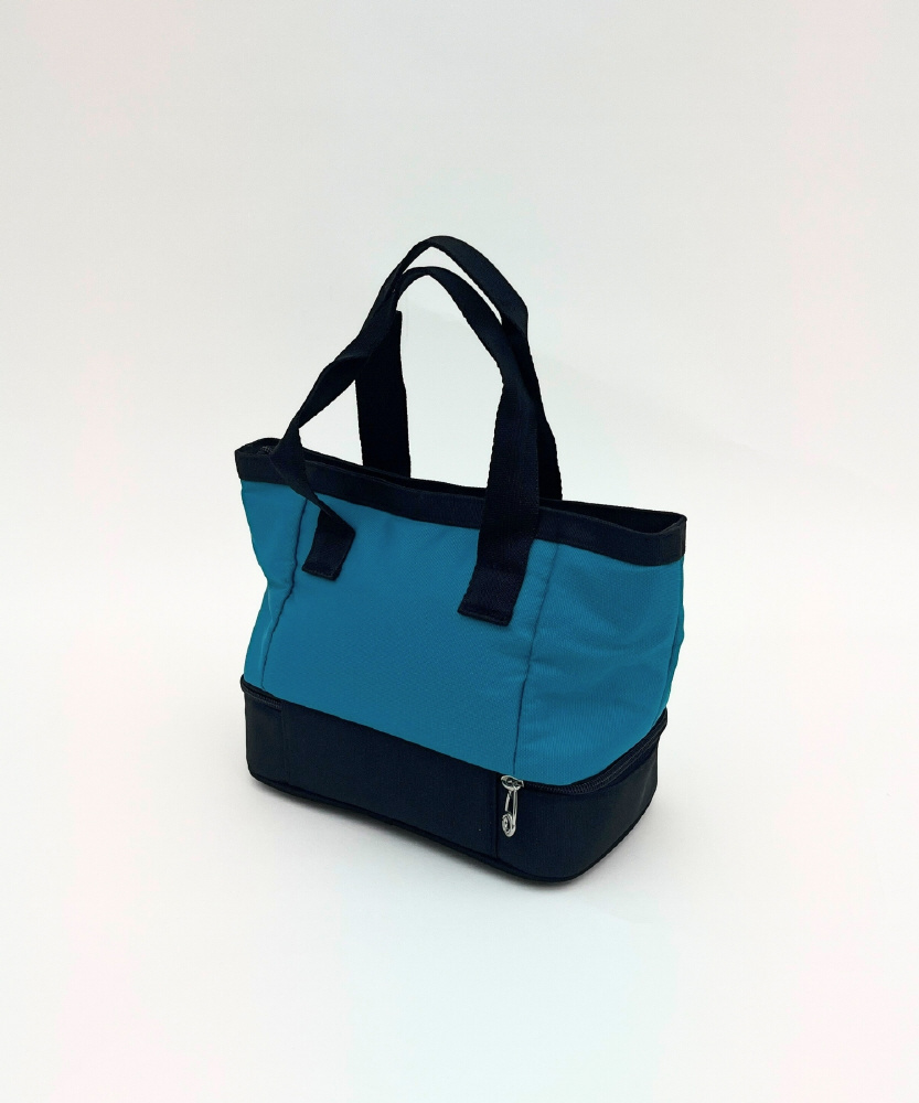 ・二層式仕様で底部に保冷裏地仕様のポケットがついており、保冷剤や冷たいドリンクなどの収納に便利です。