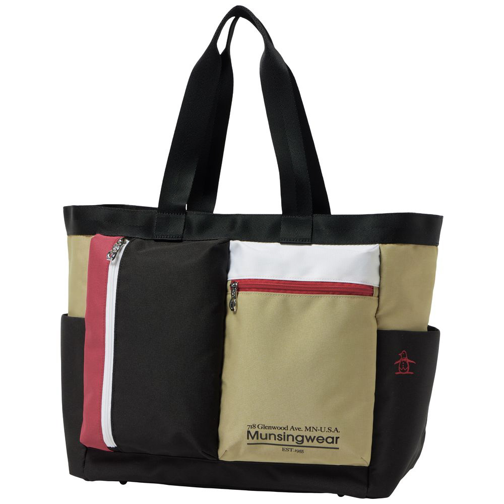 マルチカラーデザインが目を引く、機能的なトートバッグです。