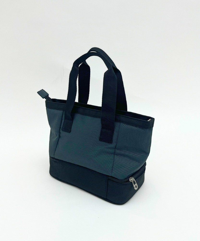 ・二層式仕様で底部に保冷裏地仕様のポケットがついており、保冷剤や冷たいドリンクなどの収納に便利です。
