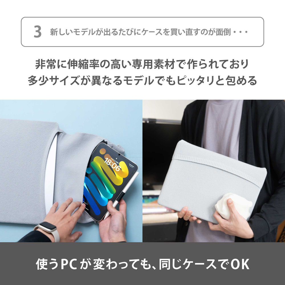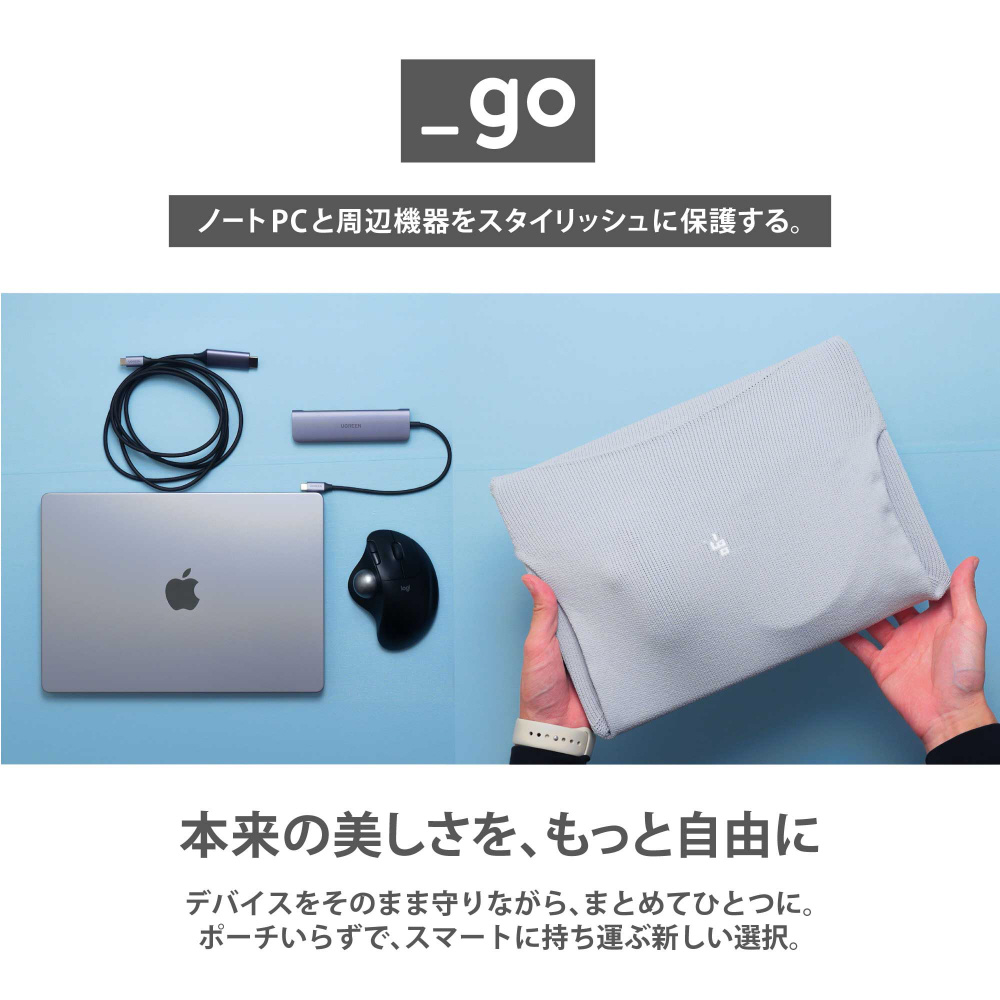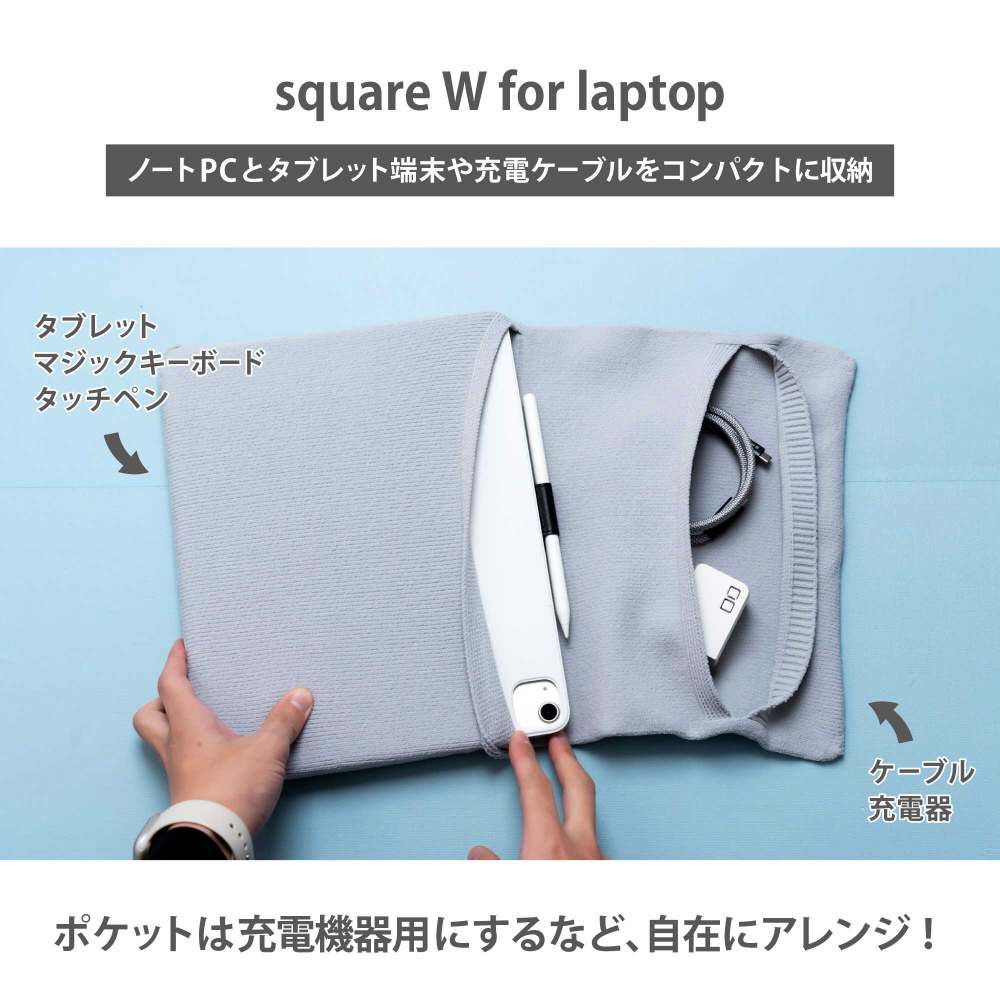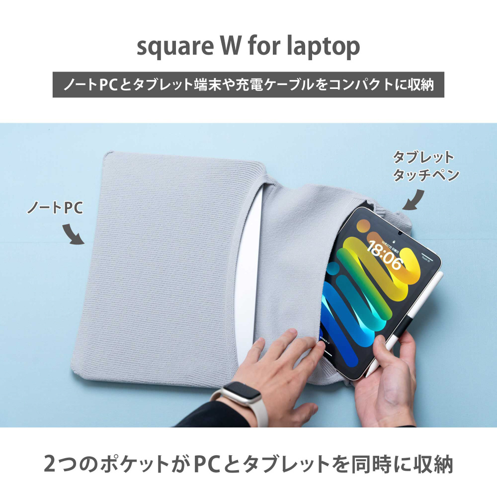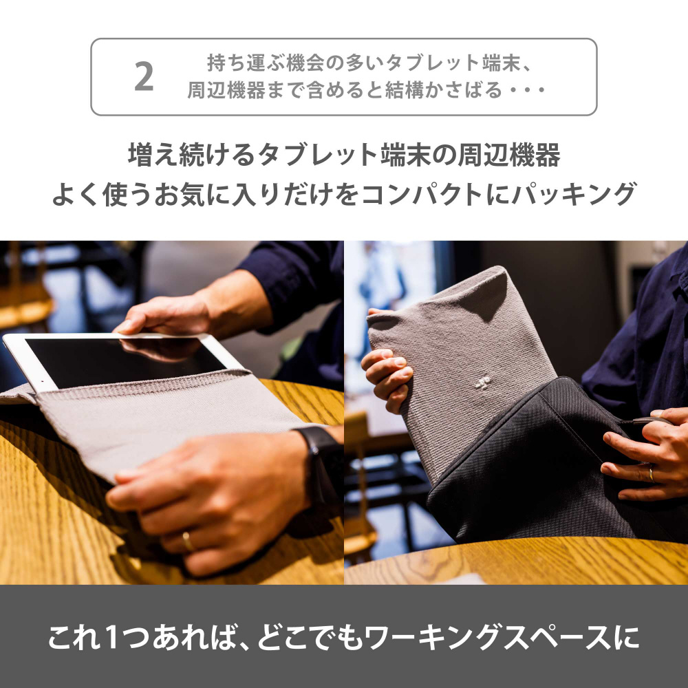 ノートPCとタブレット端末や充電ケーブルをコンパクトに収納、PCのデザインを損なわずスタイリッシュに保護