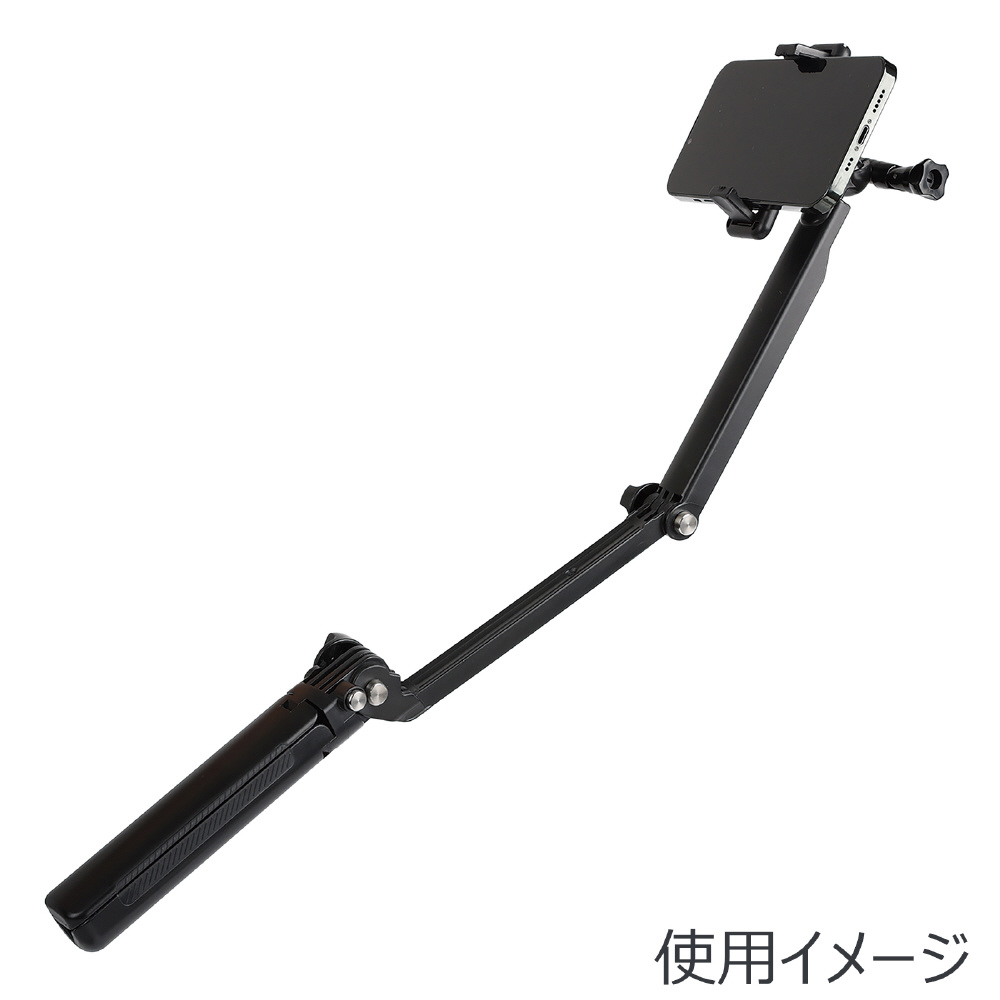 自撮り・三脚スタンド・グリップの3wayで、アクティブな撮影が可能。セルフィー使用時は通常の自撮り棒とは違い、2箇所で曲げてアームの写り込みを防止。アームを伸ばせばハイアングル一脚としてもOK。ヘッドは360°稼働。グリップ使用時は地面すれすれのローアングルで、より迫力のある表現もできます。グリップを開いてテーブル三脚に。収納に困らないコンパクト設計。