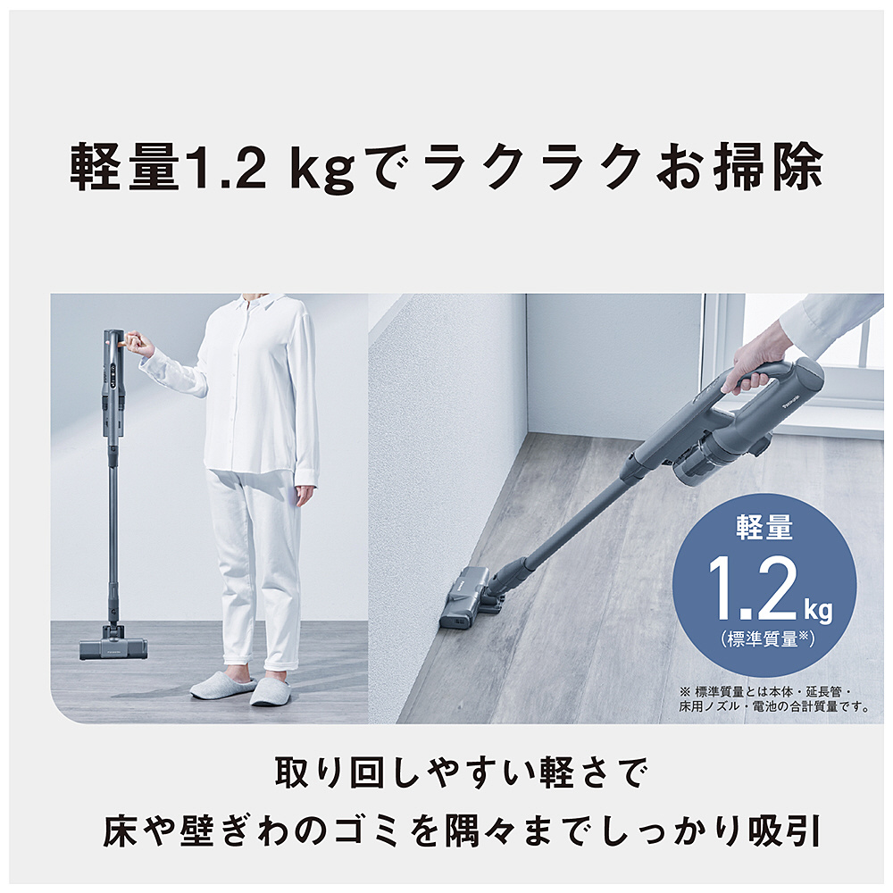 さぱっと手に取った時の軽さにこだわった軽量本体。耐久性や掃除性能にも妥協なし