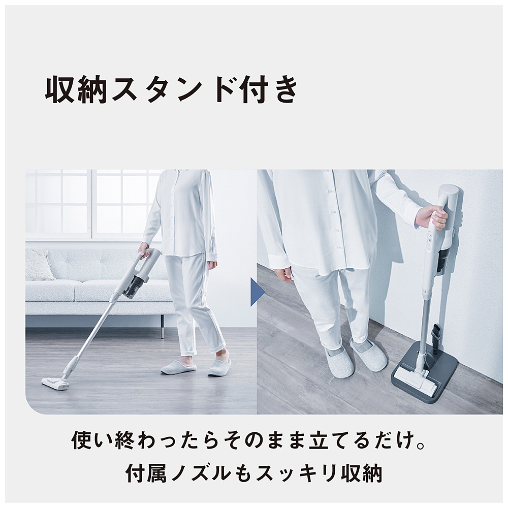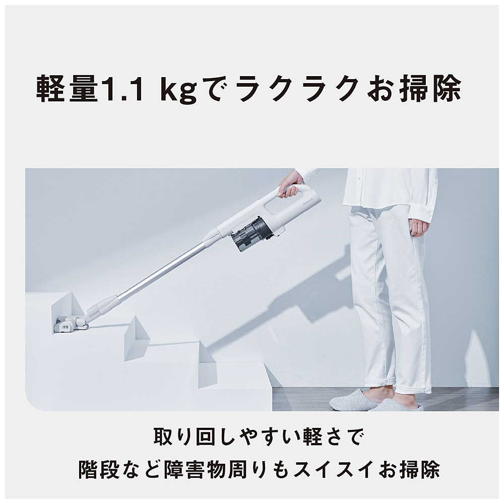 ■パワーコードレス史上No.1(★2)の軽さ。本体質量1.1kg(スティック時)★2当社製パワーコードレス掃除機において。2025年7月31日現在。