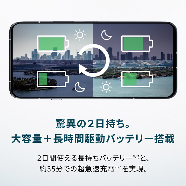 2日持ちの長持ちバッテリー×約35分超急速充電