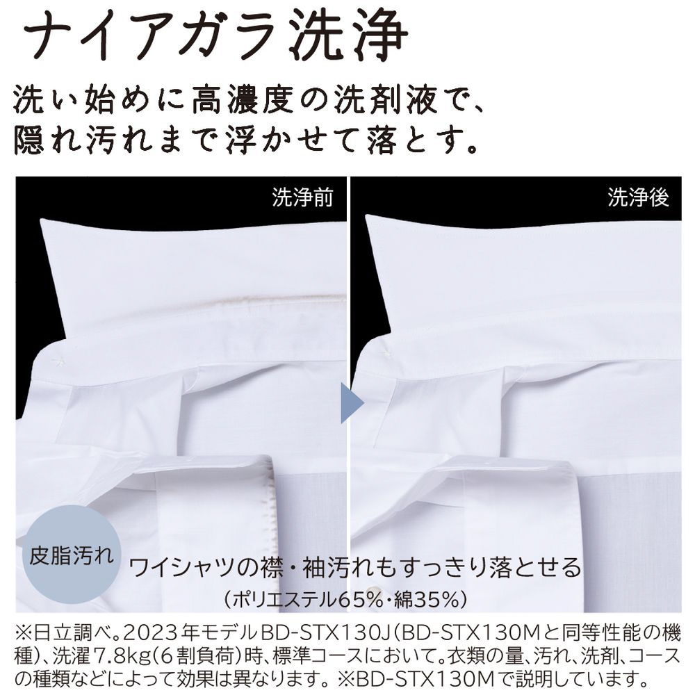 ※日立調べ。洗濯から乾燥コースにおいて。一般社団法人 日本電機工業会で定めた試験布に温度センサーを取り付けて計測。乾燥時の温度は衣類の素材により異なります。また、乾き具合によっては乾燥運転を延長し温度が高くなる場合があります。