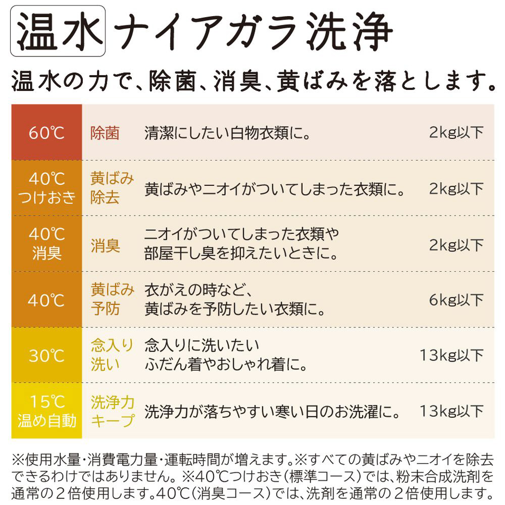 ・目的に合わせた水温で洗濯できる「[温水]ナイアガラ洗浄」(※)