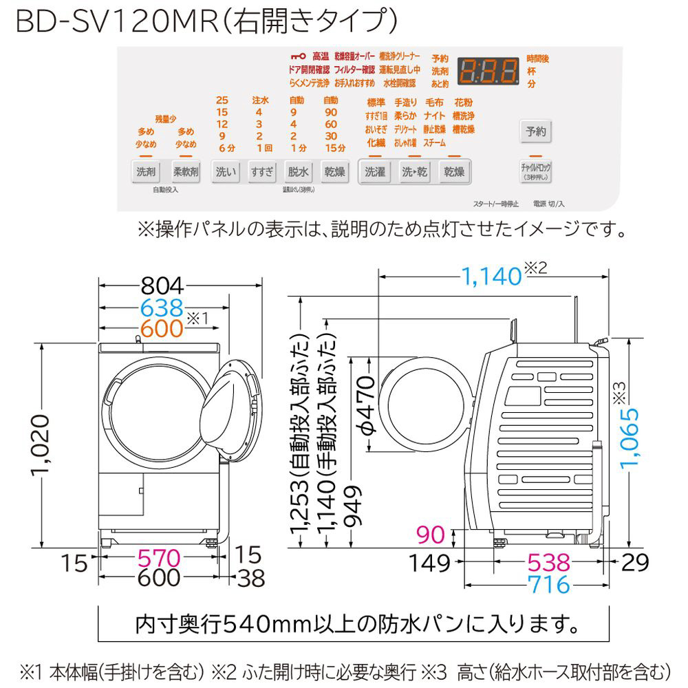 ドラム式洗濯機 ビッグドラム ホワイト BD-SV120MR-W [洗濯12.0kg /乾燥6.0kg /ヒーター乾燥(水冷・除湿タイプ) /右開き]