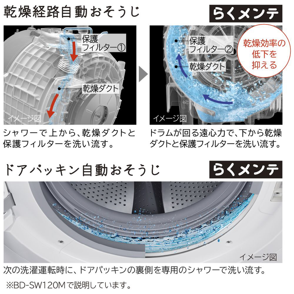 乾燥フィルターレスでお手入れがらく「らくメンテ」、高速風でシワを伸ばす「風アイロン」、高濃度と大流量で汚れをスッキリ「ナイアガラ洗浄」搭載。