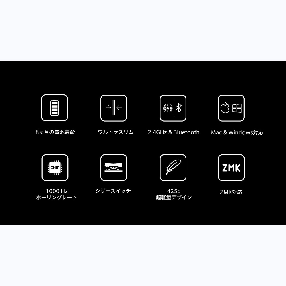 Keychron B1 Proは、シザースイッチを採用し、軽量、超薄型のワイヤレスキーボードで、1,200時間の長時間駆動を実現。2.4GHzワイヤレス、Bluetooth、有線モードに対応し、スマートフォン、タブレット、PC、Macに簡単に接続できます。ZMKのカスタマイズ機能により、自宅、オフィス、旅行など、用途に合わせた設定が可能です。