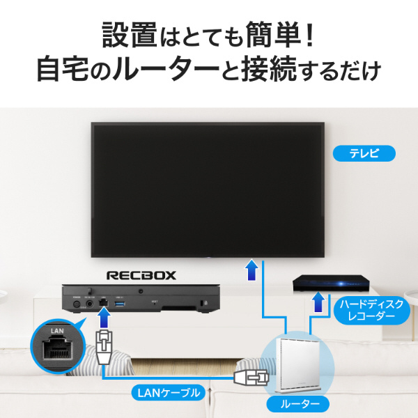「RECBOX(レックボックス)HVL-RSシリーズ」はテレビで録画した番組をダビングしておくことで、突然の故障や買い替えによってテレビが変わっても引き続き録画番組を楽しめるレコーディングハードディスクです。さらに外出先でもスマホやタブレットで視聴できるため、リビングや寝室、単身赴任先など、場所にとらわれずいつでも家じゅうから外出先まで好きなところで番組を楽しめます。