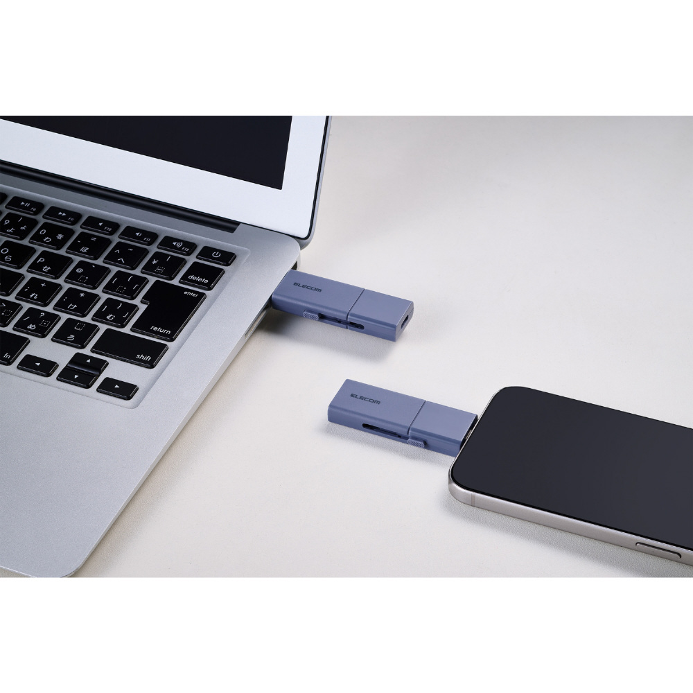 USBメモリ (iPadOS/iOS/Mac/Windows11対応) ブルー MF-WSAU3128GBU [128GB /USB TypeA+USB TypeC /USB3.2 /スライド式]