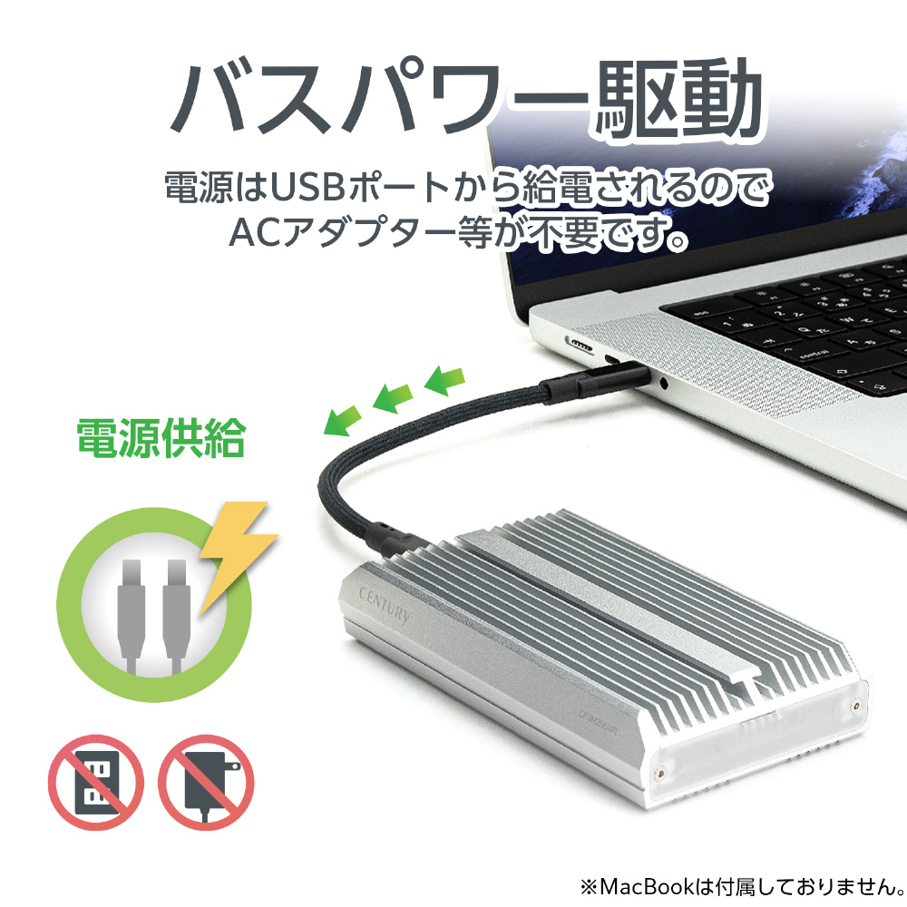 スタイリッシュなシルバーボディ!USB 40Gbps対応でMacでも、Windowsでも高速転送できるM.2 NVMeケース