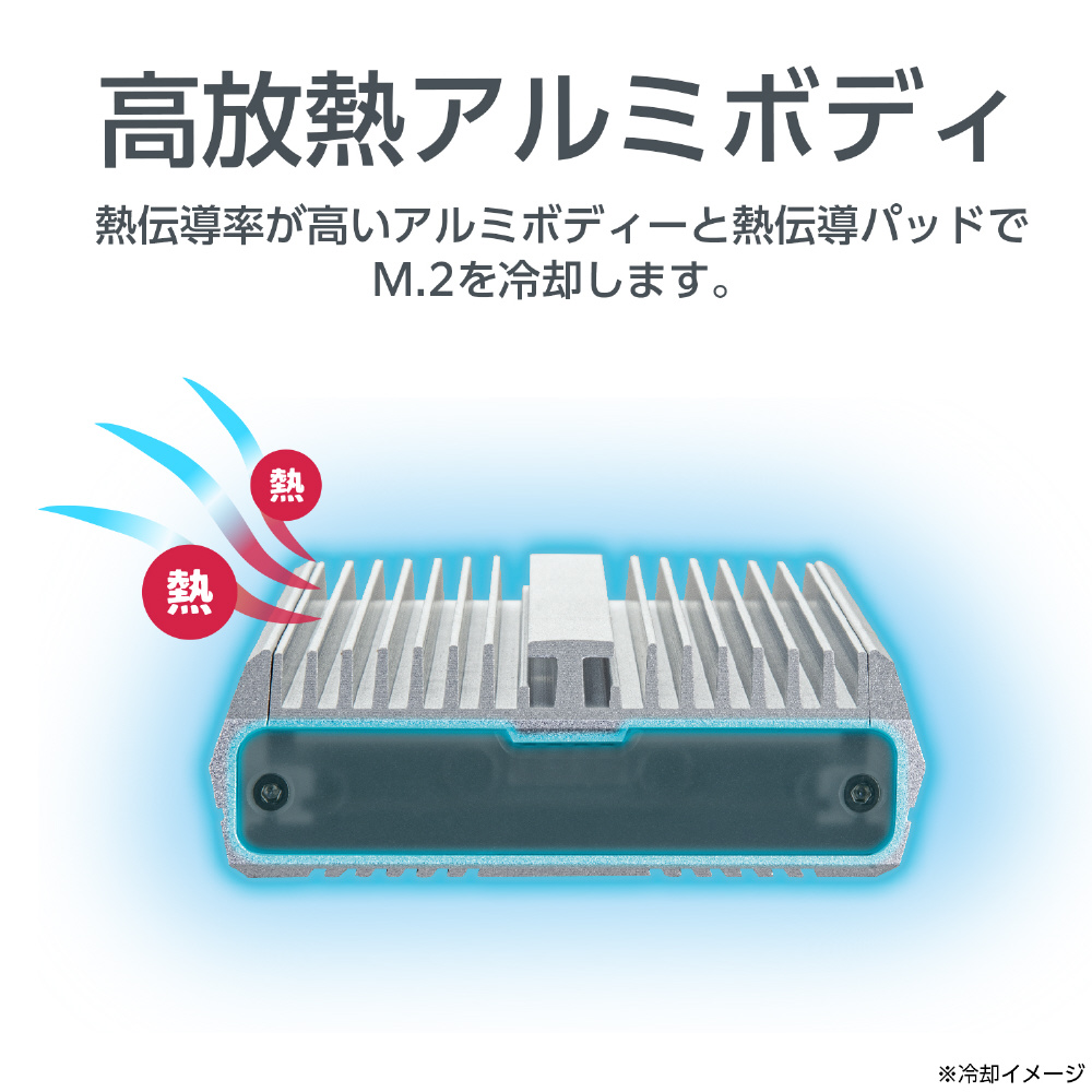 ■放熱性に適したアルミボディと熱伝導パッドでM.2 NVMe SSDを効果的に冷却。静音のファンレス設計