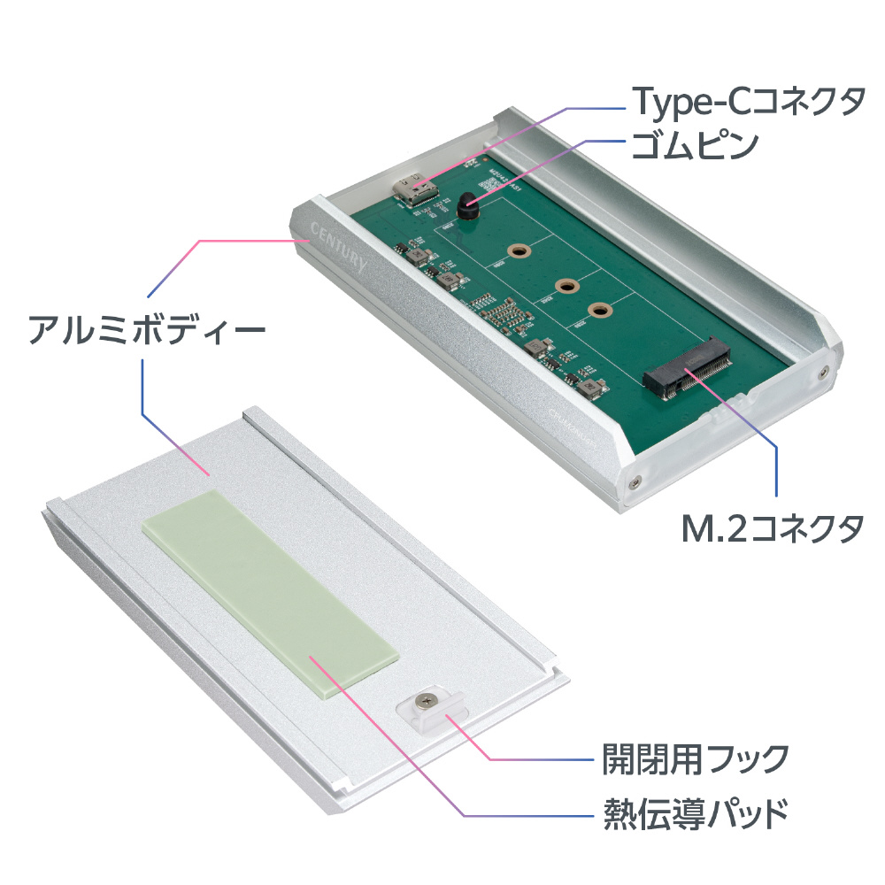 SSDケース USB-C接続 USB 4 you Silver Base(Mac/Windows11対応) シルバー CFUM2NU4FL [M.2対応 /NVMe /1台]