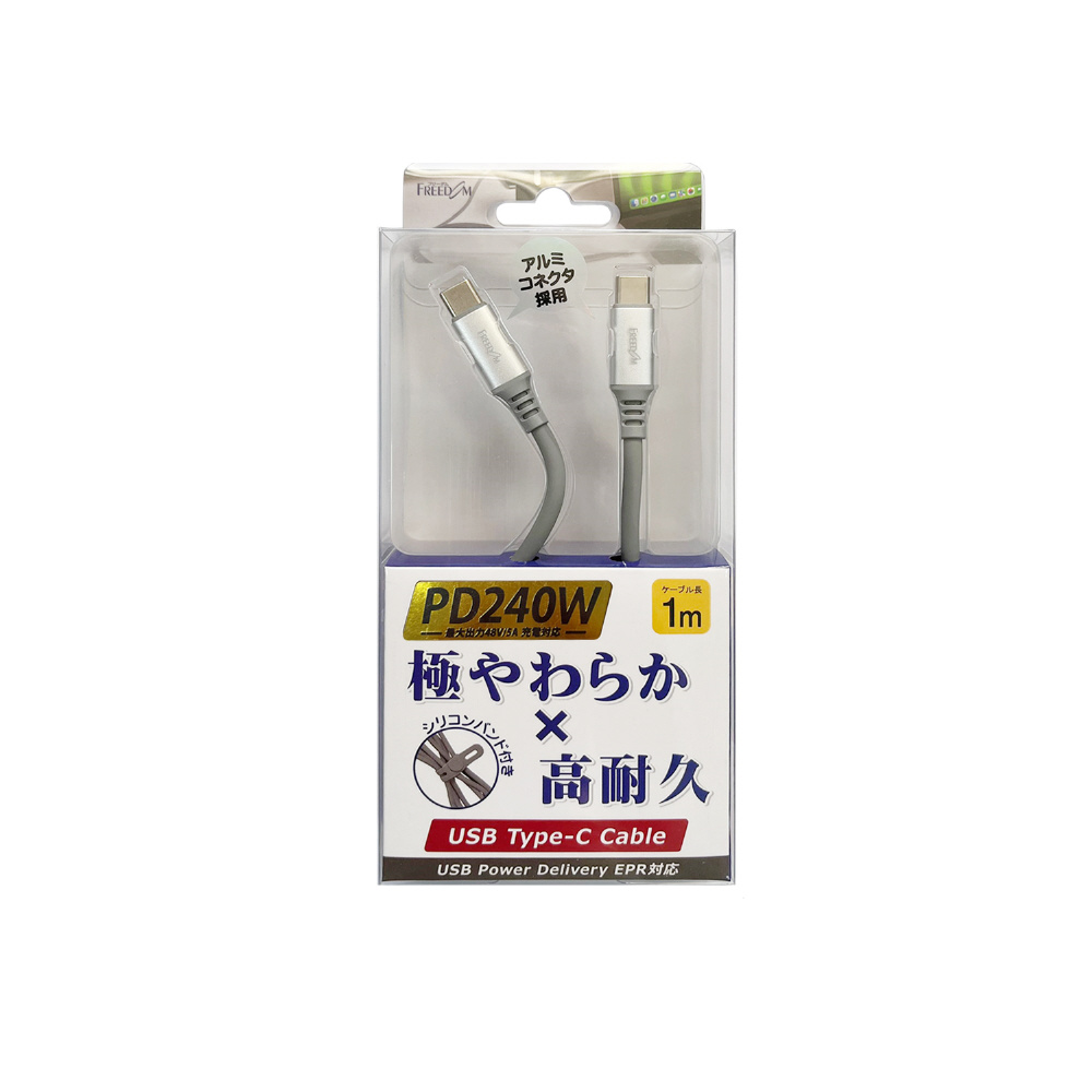 USB-C ⇔ USB-Cケーブル [充電 /転送 /1m /USB Power Delivery /240W /USB2.0] アッシュグレー FUSB-CCAC1910AG